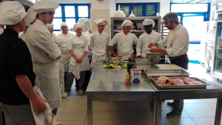 Seconda giornata di laboratorio (e quinto appuntamento), all’Istituto Alberghiero di Ladispoli, per il Progetto di Educazione al Consumo consapevole “Sapere i sapori: a tavola con gli Etruschi”, promosso dall’A.R.S.I.A.L. (Agenzia Regionale per lo Sviluppo e l’Innovazione dell’Agricoltura del Lazio). Questa mattina, oggetti speciali di attenzione nelle cucine dell’Istituto di via Federici, sono stati due piatti storici della tradizione enogastronomica laziale: l’acqua cotta e la scottiglia, che vantano antiche origini etrusche. “Anche oggi il cammino dei nostri studenti alla scoperta delle radici della cucina regionale arriva nei laboratori. – ha sottolineato la Dirigente Scolastica dell’Istituto Superiore “Giuseppe Di Vittorio, Prof.ssa Vincenza La Rosa – Lo scorso 16 maggio gli allievi si erano cimentati con la preparazione del vinum mulsum, oggi tocca a due ricette che ancora oggi possono trovarsi sulle nostre tavole, a testimonianza di un continuum storico e di un legame indissolubile fra il passato e il presente. Questo è il nostro obiettivo: introdurre un nuovo concetto di “filiera alimentare” che includa nel suo significato più profondo non soltanto la conoscenza degli aspetti organolettici e nutrizionali del cibo, ma anche il suo imprescindibile valore storico. Ringrazio il Prof. Rocco Zezza, coordinatore delle attività di oggi, l’Assistente di laboratorio Mauro Ceccobelli e tutti gli organizzatori del Progetto”.