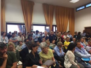 “Durante la conferenza del 23 maggio, convocata urgentemente con tutti i comuni facenti parte di ACEA Ato2 – spiega il vice sindaco di Trevignano, Luca Galloni – la SpA ha mostrato dei dati che prevedono un aumento dei prelievi durante l’estate. Roma è in emergenza idrica e ACEA sarà autorizzata a prelevare a giugno 1600 li/s, a luglio 1800 l/s e ad agosto 800 l/s”. Gli scienziati, che stanno monitorando le fluttuazioni, prevedono che il lago a settembre si abbasserà di altri 60 centimetri. Per rispondere all’emergenza, i comuni del comprensorio Sabatino stanno creando un fronte unico: “Sia ben chiaro, non consentiremo a nessuno, nemmeno ad ACEA, di lusingarci con proposte che vadano a nostro discapito. Non possiamo più permettere che il nostro territorio venga devastato”. Presente all’assemblea, anche Diego Mantero, della Direzione Ambiente della Regione Lazio e la parlamentare pentastellata Federica Daga che, insieme a Minnucci sta tenendo alta l’attenzione sul lago in Parlamento: “Oltre ad ACEA, è necessario sensibilizzare anche il Vaticano, che preleva l’acqua del lago per alimentare le fontane e l’irrigazione dei prati”.