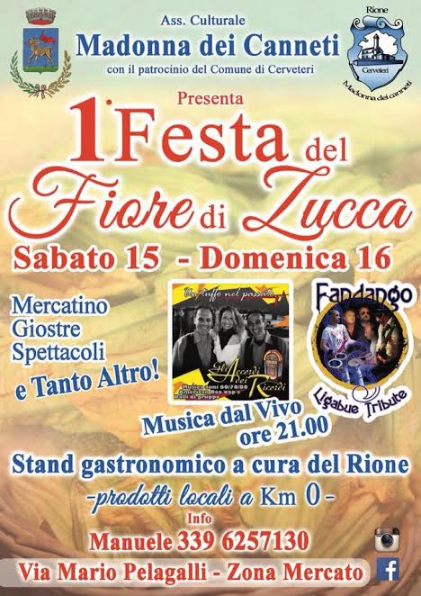 Sabato 15 e domenica 16 luglio gli attivisti e le attiviste del Rione Madonna dei Canneti presentano la prima edizione della Sagra del Fiore di Zucca. In Via Mario Pelagalli, nella parte centrale della città, due giorni di stand gastronomici, mercatini dell’artigianato, giostre, divertimento e musica dal vivo.