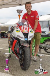 Con una sola qualifica disponibile siamo riusciti a guadagnarci una ottava piazza in griglia di partenza e sapevamo che avremmo dovuto disputare una gara non facile, proprio in virtù del livello tecnico dei nostri avversari, invece possiamo riassumere la gara come avvincente con continui colpi di scena, con Pavani e Cannone ci siamo avvicendati al comando della gara sin dal primo giro. All’inizio dell’ultimo giro il quarantenne geometra di Anguillara Sabazia (Roma) portacolori del team, Chiavari in sella ad una Kawasaki estremamente veloce (302,5 km/h la sua punta, la più elevata della categoria), era in testa autore di un eccezionale recupero che gli aveva consentito di rosicchiare un distacco di un secondo e mezzo dai primi, purtroppo negli ultimi 5.200 metri ha commesso, per sua ammissione, due errori rivelatisi fatali, prima giungendo troppo lungo alla San Donato (dove Pavanini lo ha subito ripassato) e poi sbagliando l’ingresso alla Bucine favorendo l’altro pilota laziale Cannone.