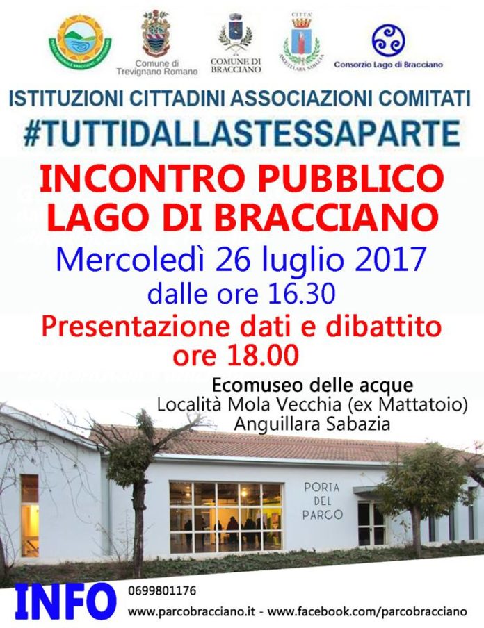L’incontro è posticipato alle 18 di oggi pomeriggio, 26 luglio presso l’Ecomuseo delle Acque di Anguillara Sabazia.