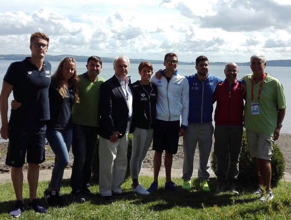 Ultima giornata delle finali della Coppa Len svolte a Bracciano sabato 16 e domenica 17 settembre. L’Italfondo rimane sempre da copertina: Dario Verani è primo, Martina Caramignoli seconda, Alessio Occhipinti e Ginevra Taddeucci terzi nelle cinque chilometri che chiudono il programma gare. Il 23enne toscano – tesserato per Nuoto Livorno, già terzo nella dieci chilometri sabato – si conferma sprinter d’autore e si impone in 55’04”0, beffando in volata l’ungherese Kristof Rasovszky – vincitore della classifica generale – secondo in 55’04”4 e Alessio Occhipinti – tesserato per CC Aniene e seguito dal tecnico federale Emanuele Sacchi – terzo in 55’05”6. Nei migliori sette gli altri azzurri: Marcello Guidi (RN Cagliari) quarto in 55’06”0 e Andrea Bianchi (Marina Militare/RN Spezia) settimo in 55’10”8.
