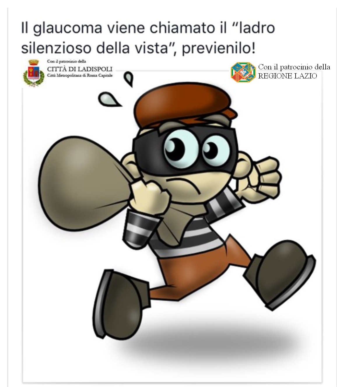 La delegata del sindaco Grando per la prevenzione delle patologie sul territorio, Olimpia De Prosperis, rende noto che domenica 19 novembre, dalle ore 10:00 alle ore 17:00 sarà possibile sottoporsi a screening gratuito del glaucoma presso Piazza Rossellini.
