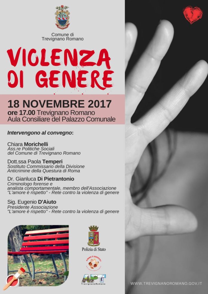 Sabato 18 novembre si terrà a Trevignano Romano un convegno dal titolo “Violenza Di Genere” dove si discuterà di violenza sulle donne. L’evento si svolgerà presso l’aula Consiliare del comune ed è gradita la presenza di un pubblico numeroso, per affrontare un tema sensibile, di grande attualità e che riguarda tutti.