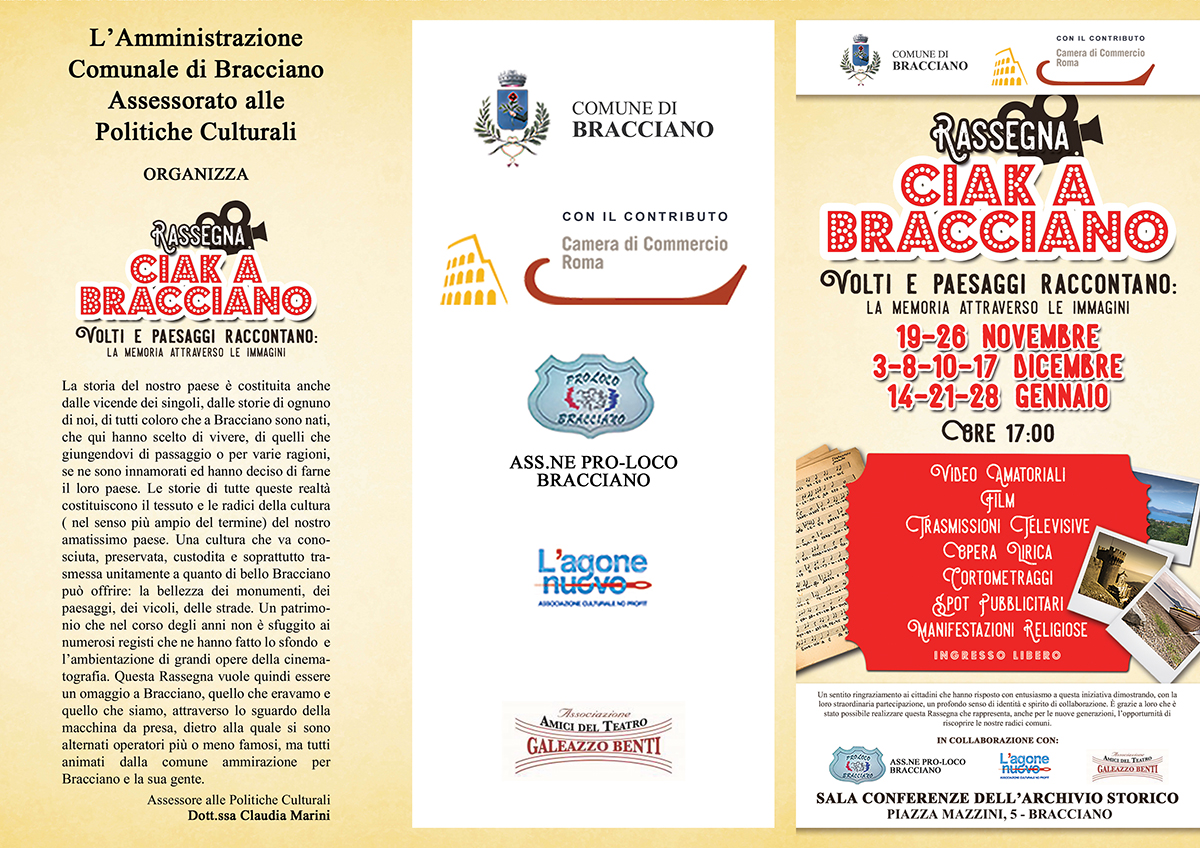 “La storia del nostro paese è costituita anche dalle vicende dei singoli, dalle storie di ognuno di noi, di tutti coloro che a Bracciano sono nati, che qui hanno scelto di vivere, di quelli che giungendovi di passaggio o per varie ragioni, se ne sono innamorati ed hanno deciso di farne il loro paese (…). Questa Rassegna vuole quindi essere un omaggio a Bracciano, quello che eravamo e quello che siamo, attraverso lo sguardo della macchina da presa, dietro alla quale si sono alternati operatori più o meno famosi, ma tutti animati dalla comune ammirazione per Bracciano e la sua gente”.