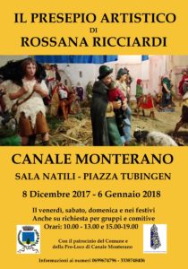 Dopo un lungo girare in centri importanti del Centro Italia, torna finalmente a Canale il Presepio Artistico di Rossana Ricciardi. Durante tutte le feste natalizie, le straordinarie creazioni dell’artigiana dei papi (perché artigiana si definisce) o della “signora dei presepi”, come l’hanno spesso definita, saranno esposte presso la Sala Natili nella centralissima Piazza Tubingen.