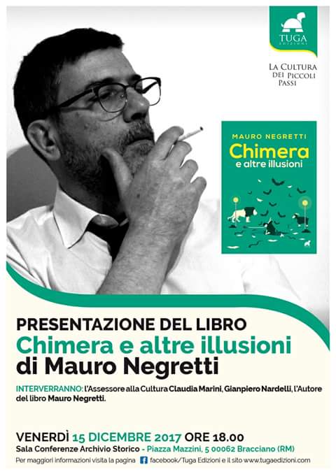 Mauro Negretti, figura nota ed amata dai braccianesi per il lavoro che da anni svolge presso l’ospedale Padre Pio, ha recentemente dato alle stampe la sua seconda fatica letteraria, dal titolo “Chimera e altre illusioni”, che segue “Porpora e oro” pubblicato quattro anni fa, sempre per quelli della Tuga edizioni.