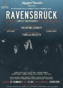 Sabato 27 gennaio, alle ore 21.00, nei locali di Sala Ruspoli in Piazza Santa Maria, l’Associazione Margot Theatre propone lo spettacolo teatrale “RAVENSBRUCK”, con Michela Cappelloni, Cecilia Gorla, Martina Grandin, Virginia Loreti, Gabriele Pitton, Alice Staccioli e Sofia Xellae la regia di Valentina Cognatti. Uno spettacolo toccante che racconta la storia del campo di concentramento, ripercorrendo, dal momento della sua apertura, le tappe principali della sua evoluzione, e mettendo in luce gli eventi e i personaggi che l’hanno realmente caratterizzata.
