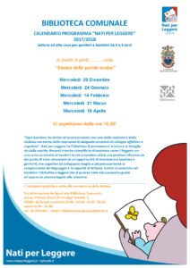 Mercoledì 21 marzo dalle ore 16,30 presso la Biblioteca Comunale di Trevignano Romano un nuovo appuntamento con il Nati per Leggere ‘Nella Stanza delle parole scalze’. Letture ad alta voce per bambini dai 0 ai 6 anni e i loro genitori.