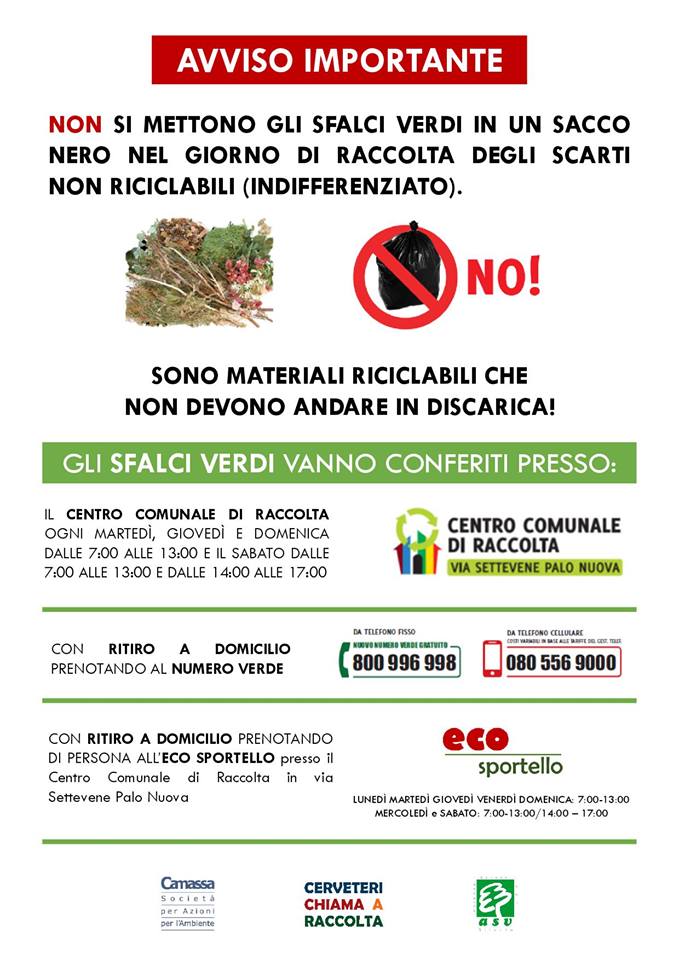 “Questo non rappresenta un elemento positivo per il buon esito della nostra raccolta – ha dichiarato Elena Gubetti, Assessora all’Ambiente del Comune di Cerveteri – mentre i rifiuti non riciclabili vengono conferiti in discarica in quanto non è possibile riutilizzarli in nessuna maniera, con un costo per le casse dell’Ente, gli sfalci verdi sono materiali riciclabili al 100%. Per questo invito tutta la cittadinanza ad attenersi quanto più possibile a ciò che prevede il calendario e il kit informativo che viene distribuito insieme ai mastelli e che è disponibile anche nella sezione Cerveteri chiama a Raccolta, sul sito www.comune.cerveteri.rm.it”.