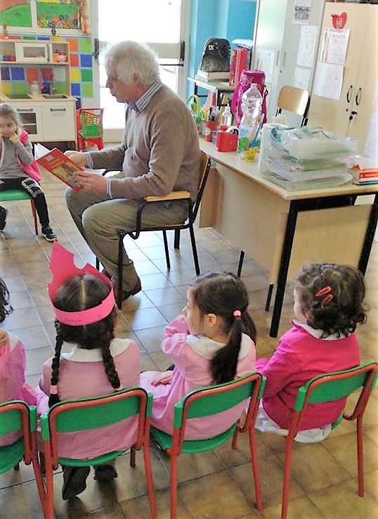 Tutto bello, ma ancora manca qualcosa: abbiamo pensato di invitare ogni settimana un genitore in sezione per leggerci una storia, siamo piccini ancora non lo sappiamo fare da soli, ma poi… finita la lettura… siamo bravissimi a rappresentare quanto ascoltato, l’altro giorno mamma Emanuela ci ha letto la storia di Peter Pan, che bella storia! E dopo chi faceva la vocina di Michele, chi sghignazzava come Giovanni, chi faceva il vocione di Uncino! Ed io? beh io ero Peter naturalmente….