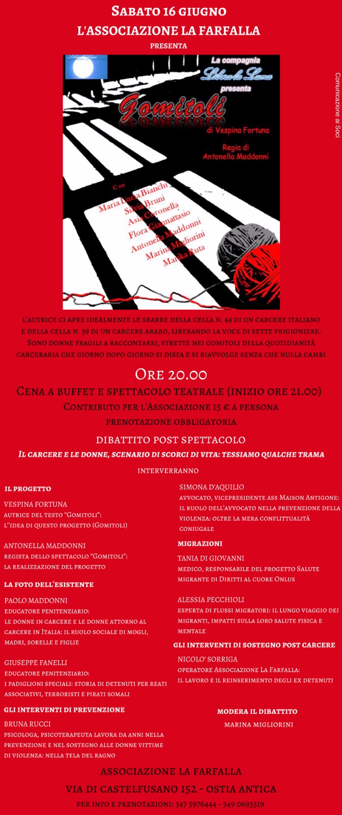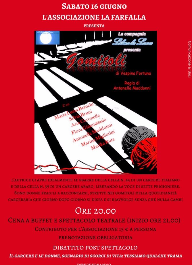 Sabato 16 giugno l’associazione “La Farfalla” presenta lo spettacolo “Gomitoli”