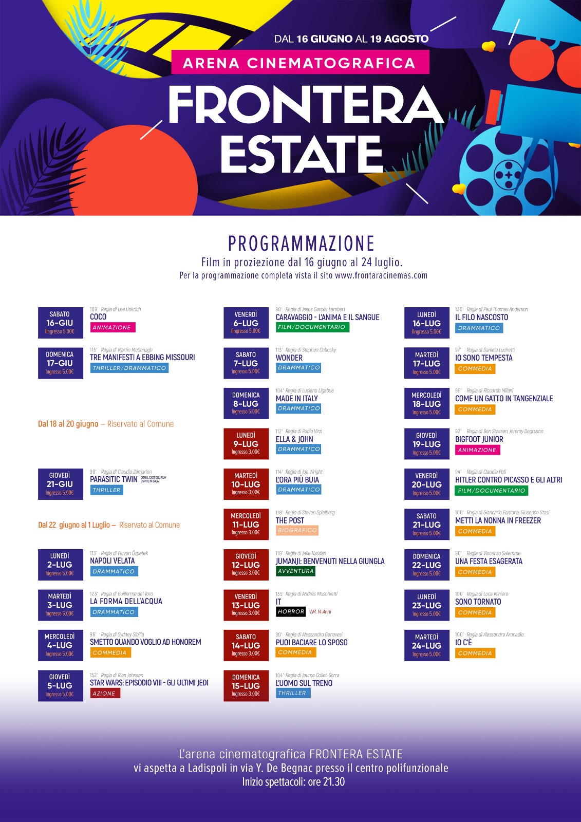 Per informazioni è possibile visitare il sito www.fronteracinemas.com (sezione “Frontera Estate” per l’arena) e la pagina Facebook “Frontera Estate” (https://www.facebook.com/Frontera-Estate-247541435754761/).