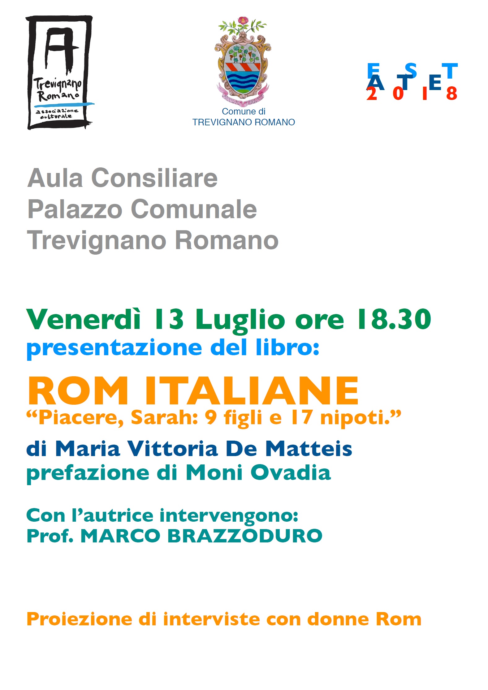 siete invitati alla presentazione del libro “Rom Italiane” di Maria Vittoria De Matteis Edizioni Arcobalena. Prefazione di Moni Ovadia.