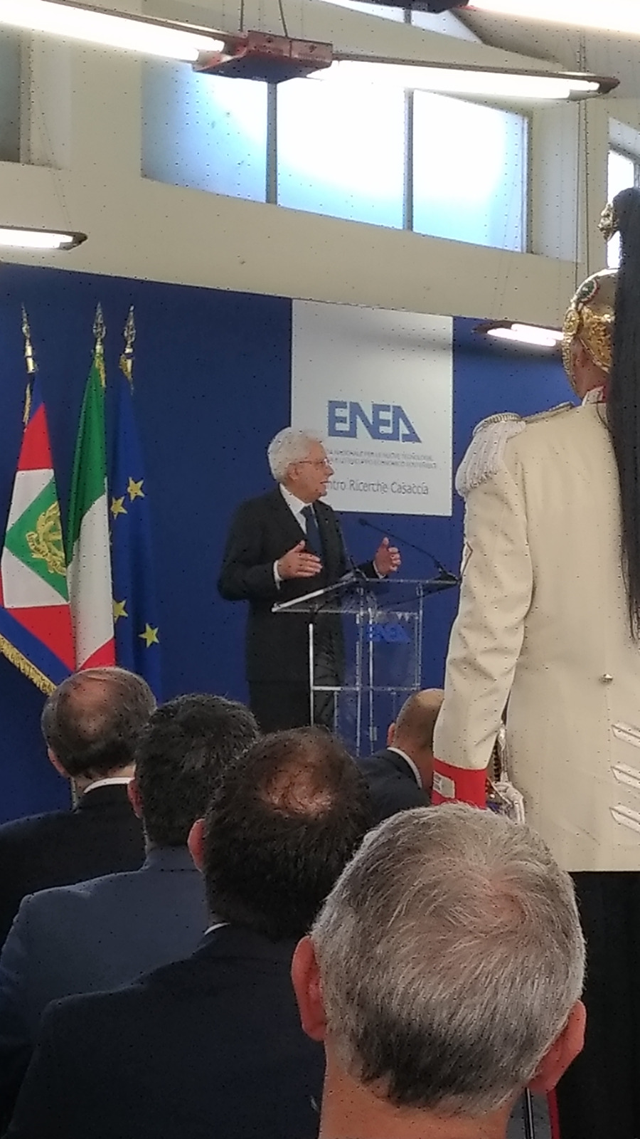 Il discorso del Presidente è stato preceduto da quello di benvenuto del Presidente dell’ENEA, Federico Testa, che ha sottolineato come la visita del Presidente della Repubblica fosse un forte segnale di attenzione per il al mondo della ricerca, il cui contributo al progresso del Paese è fondamentale. I compiti istituzionali dell’ENEA sono stati messi in evidenza così come il lento, ma costante miglioramento delle condizioni operative di un Ente che negli anni appena trascorsi ha vissuto una condizione di profonda crisi. Il ri-orientamento dei compiti istituzionali dell’Ente, così come  l’assunzione di nuovi ricercatori è il segno evidente che l’ENEA può e deve avere un ruolo di primo piano nel panorama nazionale.