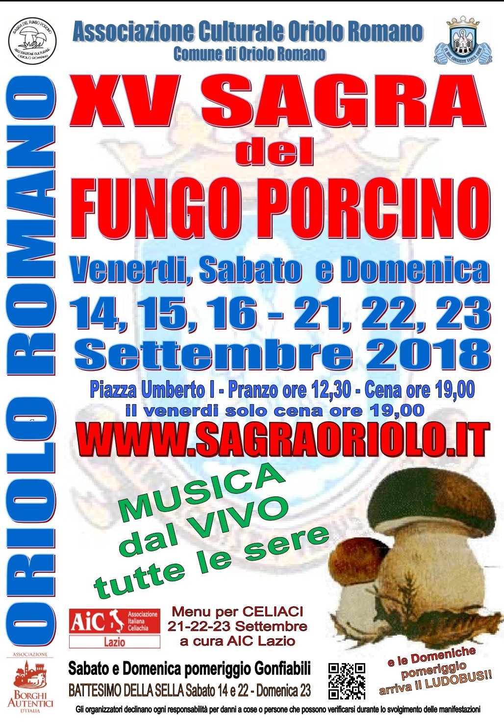 Dopo il grande successo delle precedenti edizioni torna la Sagra del fungo porcino di Oriolo Romano giunta alla sua XV edizione.