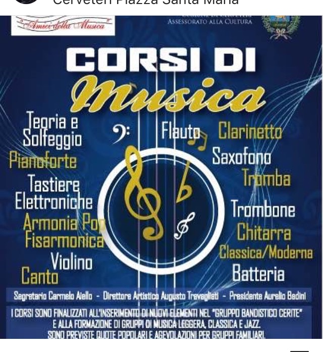 Sono pronti a ripartire i corsi di musica dell’associazione Amici della Musica di Cerveteri. Stanno per ricominciare infatti i corsi dell’Associazione del Presidente Aurelio Badini e diretta dal Maestro Augusto Travagliati.