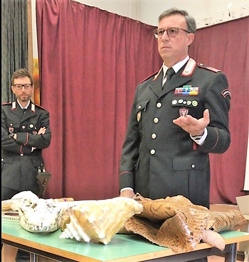 Il Comandante ha precisato che non è vietato il commercio di animali esotici o di oggetti da essi derivati (pelli, zanne, carni … per realizzarne portachiavi, pellicce, souvenir eccetera), ma occorre rispettare le norme che lo regolamentano affinché questo sia sostenibile dal nostro ambiente. Dagli anni ’90 l’Italia ha infatti aderito alla convenzione di Washington che prevede un elenco, aggiornato annualmente, che prevede circa 1000 animali non commercializzabili (perché in via di estinzione) e oltre 38000 animali e vegetali acquistabili con le dovute attenzioni. Questa convezione ha lo scopo di tutelare il nostro ambiente e comprare o prelevare un prodotto regolamentato dalla CITES può diventare un reato di natura penale o una sanzione amministrativa nonché si può incorrere nel reato di “incauto acquisto”. È importante avere attenzione a queste vendite perché non si tratta di affari di poco conto, si pensi solo che a livello internazionale il commercio illegale di animali e piante è il secondo dopo quello di armi e droga.