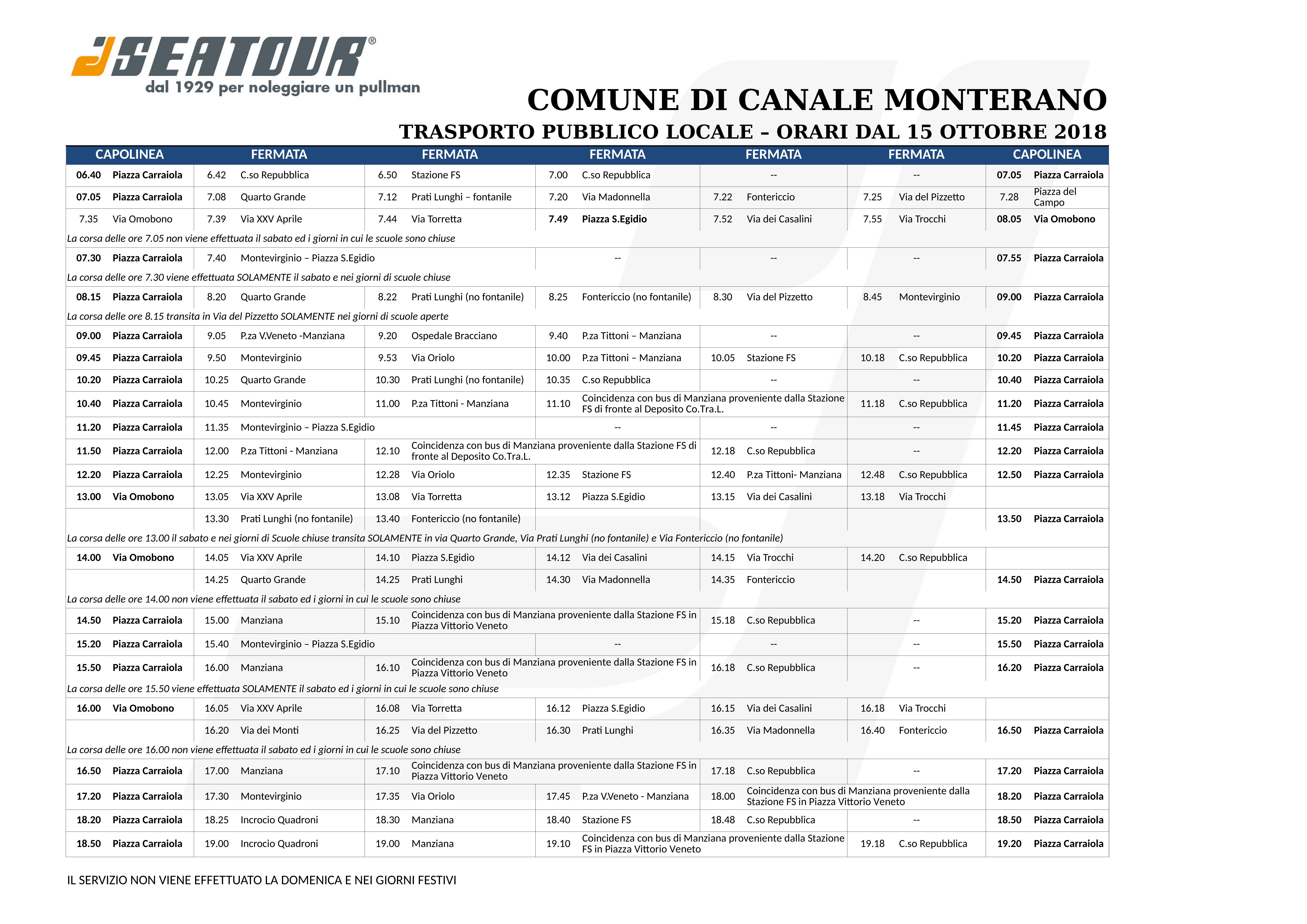 “Ancora una volta ci muoviamo – conclude il Sindaco Alessandro Bettarelli – facendo di necessità virtù, ossia migliorando un servizio senza incrementare la spesa pubblica comunale, nei limiti del chilometraggio assegnatoci dalla Regione Lazio. Abbiamo ascoltato richieste e consigli e oggi presentiamo ai cittadini di Canale e Montevirginio questo nuovo piano delle corse, pronti ad ascoltare altre segnalazioni che arriveranno in futuro. Andiamo avanti, consapevoli che senza grandi risorse a disposizione i miracoli non si possono fare. Crediamo però che i cittadini apprezzeranno l’impegno e il lavoro che l’Amministrazione mette ormai da quasi due anni e mezzo nel venire incontro alle loro necessità”.