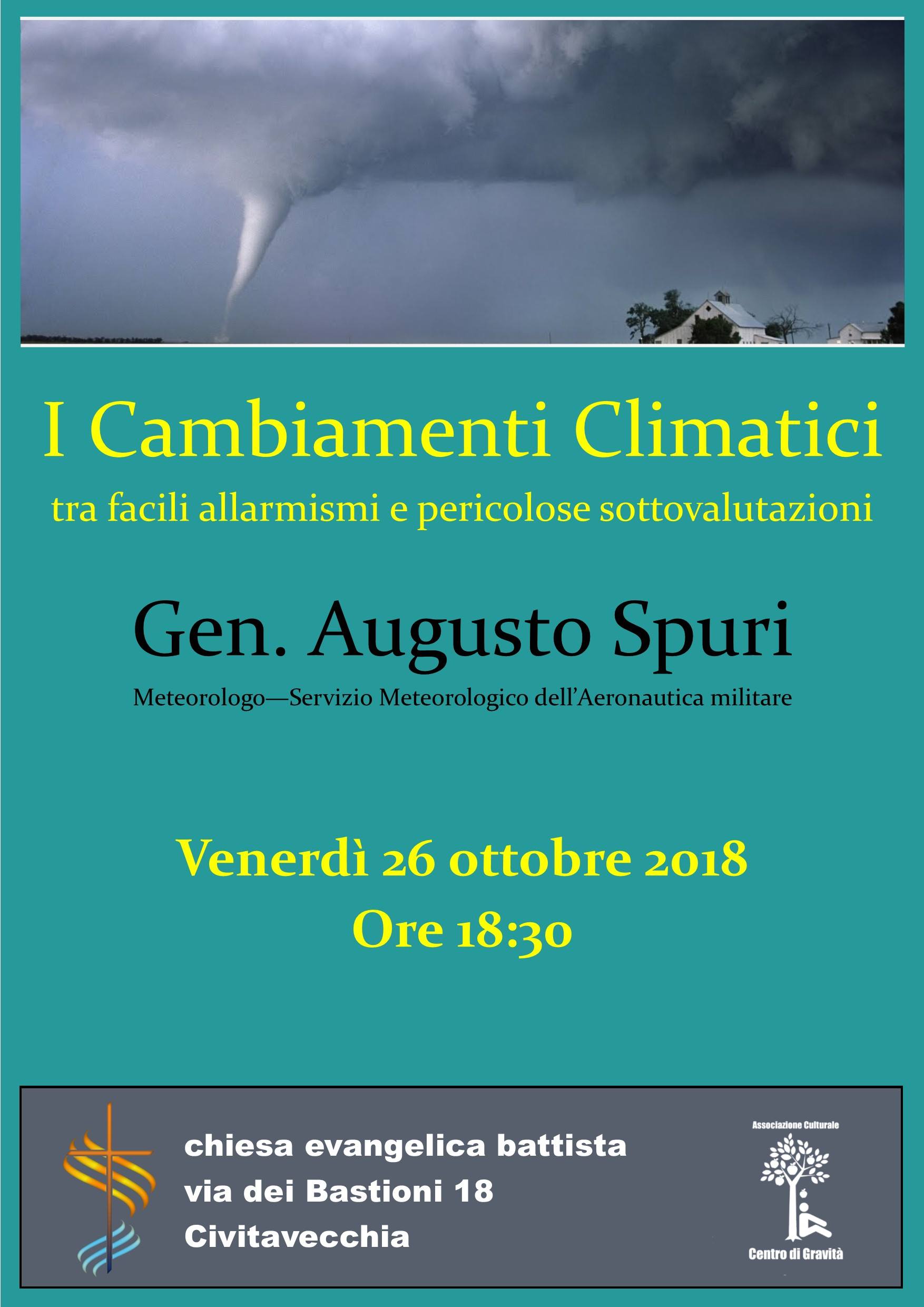 Conferenza sui cambiamenti climatici del meteorologo Augusto Spuri presso la chiesa evangelica battista di via dei Bastioni 16 (zona mercato) a Civitavecchia.