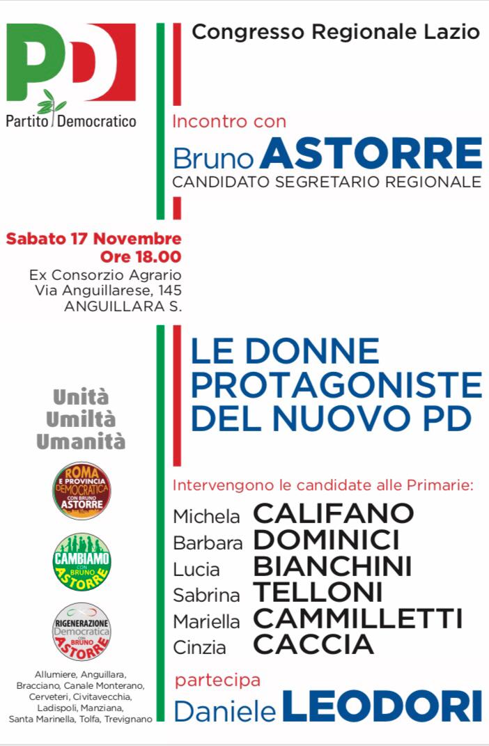 Anguillara, evento con il sen. Astorre “Le donne protagoniste del nuovo PD”