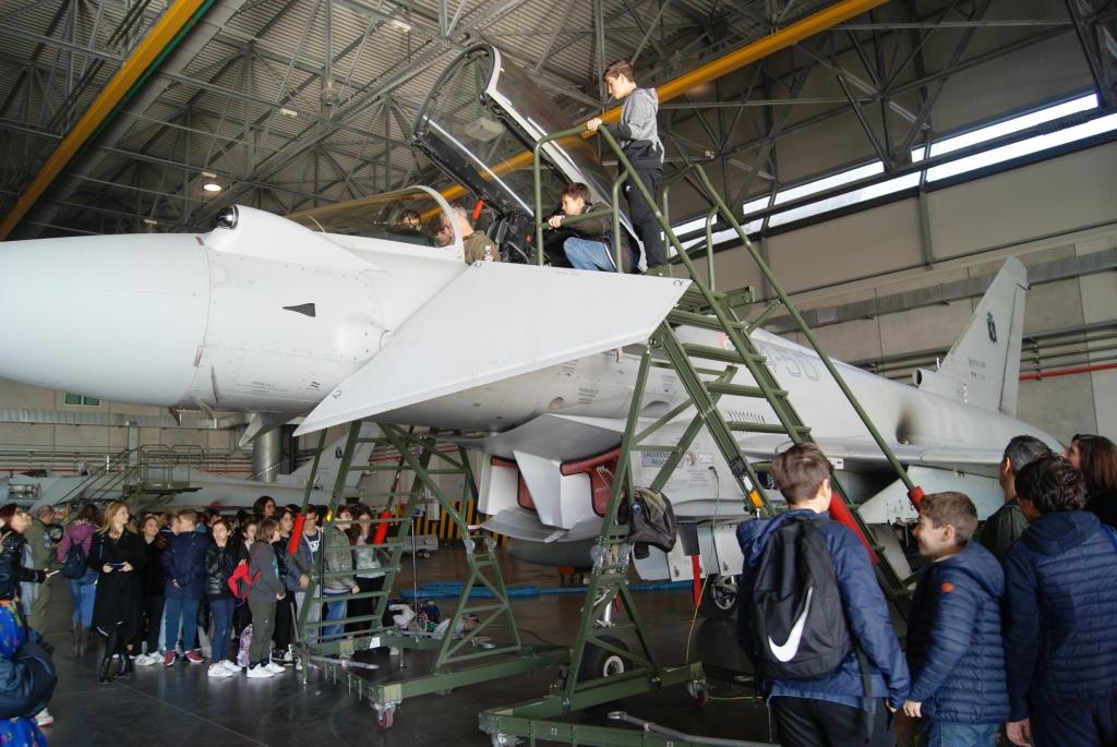 Entrando nell’hangar, abbiamo visto l’Eurofighter Typhoon, il più avanzato aereo da combattimento mai sviluppato in Europa, molto efficace nella difesa aerea, per intercettare e identificare qualunque traccia aerea sospetta, rilevata dai radar, 24 ore su 24, 365 giorni all’anno, una vera opera d’arte ha detto la professoressa. Esso è il frutto di un progetto e della collaborazione industriale di Germania, Gran Bretagna, Italia e Spagna. Gli Eurofighters sono aerei “stealth”, ossia praticamente invisibili ai radar, così da essere efficaci nel loro ruolo: difendere lo spazio aereo italiano. Questi velivoli devono essere sempre efficienti e, quindi, sono controllati continuamente.