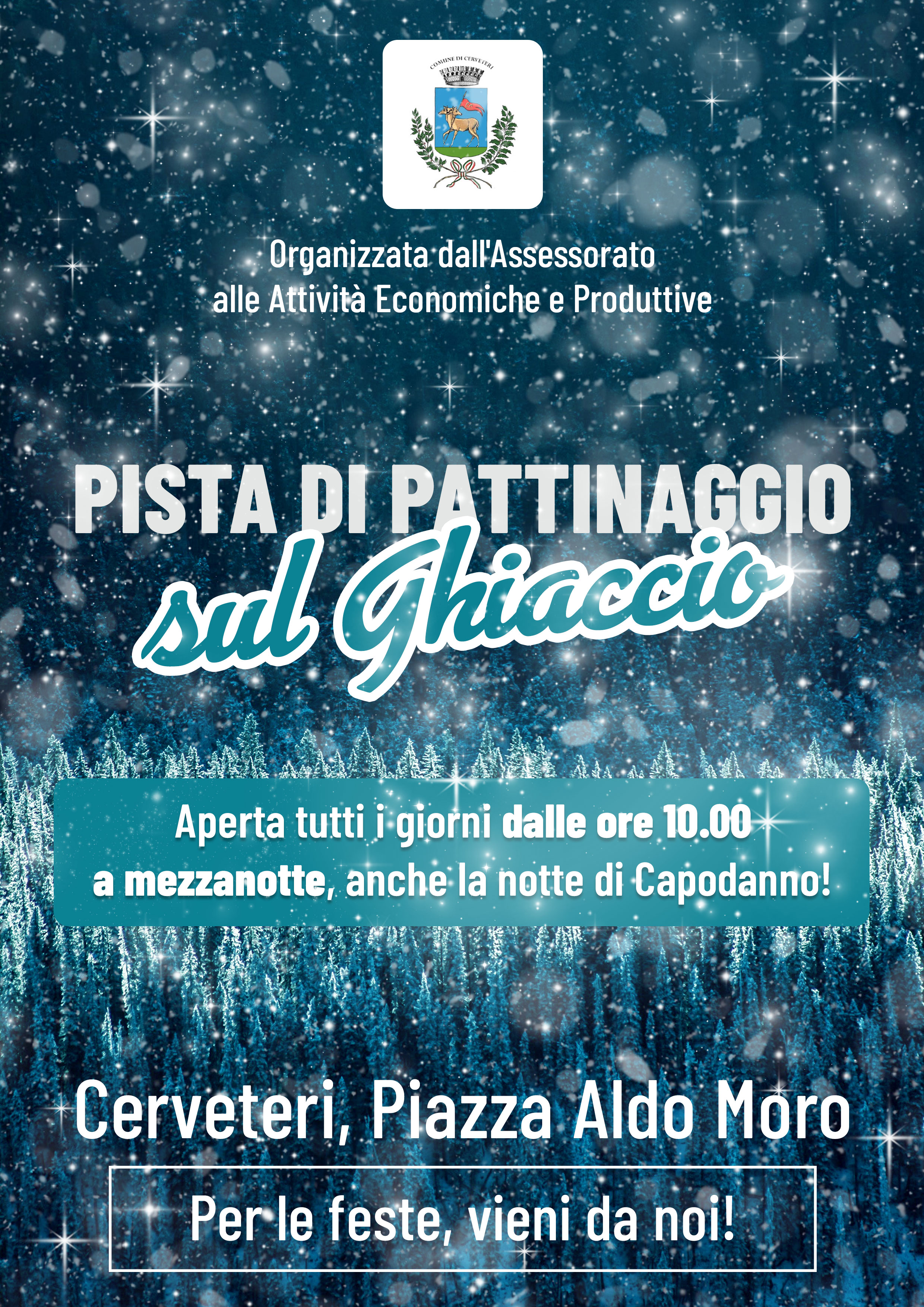 Sarà inaugurata ufficialmente domani pomeriggio, sabato 22 dicembre alle ore 16.00 con un meraviglioso spettacolo di pattinaggio artistico, la pista di pattinaggio sul ghiaccio di Piazza Aldo Moro a Cerveteri, proposta dall’Assessore alle Attività Economiche e Produttive Luciano Ridolfi nell’ambito delle iniziative del Natale Etrusco.