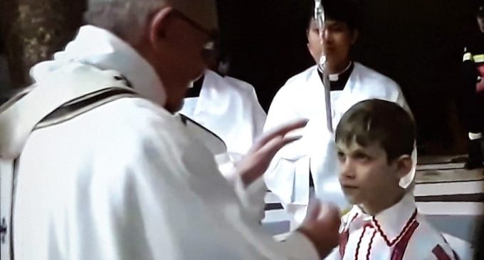 Ma le sorprese non sono finite! Uno dei bambini presenti alla festa ha avuto modo di incontrare, qualche giorno dopo, papa Francesco partecipando alla Processione della Vigilia in Vaticano. Infatti alla processione sono stati invitati 12 bambini, di 6 Paesi del mondo, di cui 2 romeni, una ragazzina che abita a Roma e Cristian Rafael Dumea di Ladispoli, che frequenta la terza primaria presso la “Ilaria Alpi”, insieme alla sorella Alessandra. I bambini sono andati, insieme al Sommo Pontefice che portava il Bambino Gesù, verso la mangiatoia allestita nell’impressionante altare della Basilica di San Pietro. Insieme a 30 cardinali e 40 vescovi, hanno così ricordato la nascita del Santo Bambino nella stalla del Betlemme in Giudea più di 2000 anni fa. Cristian Rafael Dumea, 8 anni, è stato così benedetto dal Papa nella notte della Vigilia.