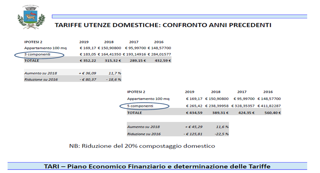 N.B. In allegato alla presente le schede con tutti i numeri della TARI relativi agli anni 2016, 2017, 2018, 2019 dai quali si evince quanto dichiarato nell’articolo.