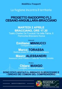 Martedì 2 Aprile a Bracciano presentazione del progetto di raddoppio fl3 Cesano-Anguillara-Bracciano
