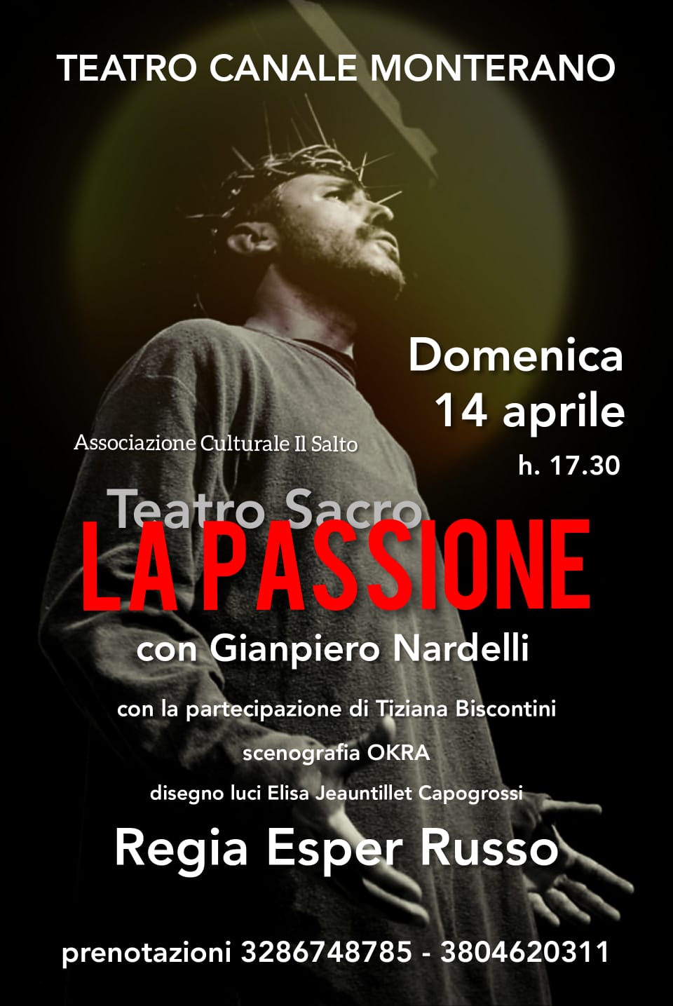 Domenica 14 Aprile al Teatro di Canale Monterano “La Passione” – con Gianpiero Nardelli, regia Esper Russo