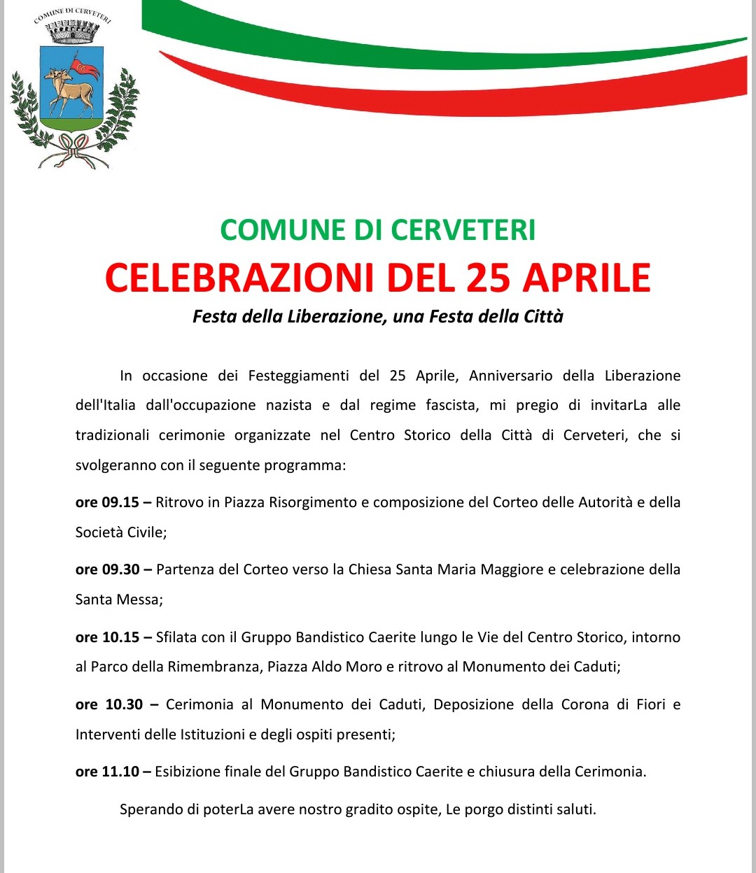 Programma celebrazioni del 25 Aprile a Cerveteri