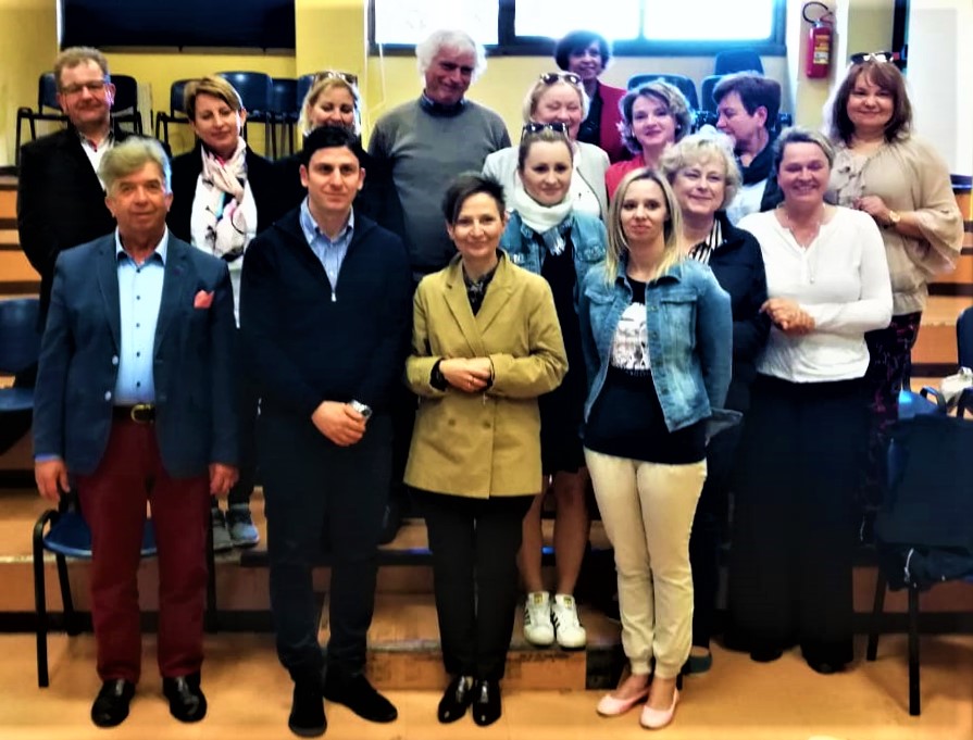 Prima di visitare la Scuola, ci si è riuniti tutti insieme per confrontarsi sulla didattica nei due Paesi. Nel proficuo incontro sono stati scambiati commenti e idee in generale sulla didattica ed in particolare sulla inclusività, in particolar modo relativamente a quella degli stranieri (che non parlano la nostra lingua) e dei diversamente abili nelle nostre classi, aspetto non previsto dalla legislazione polacca. In particolare delucidazioni e chiarimenti sono stati offerti dalla professoressa Pina Ruggiero che ha voluto far conoscere ai dirigenti scolastici la sua preziosa perla, il meraviglioso Matteo che segue da un anno.