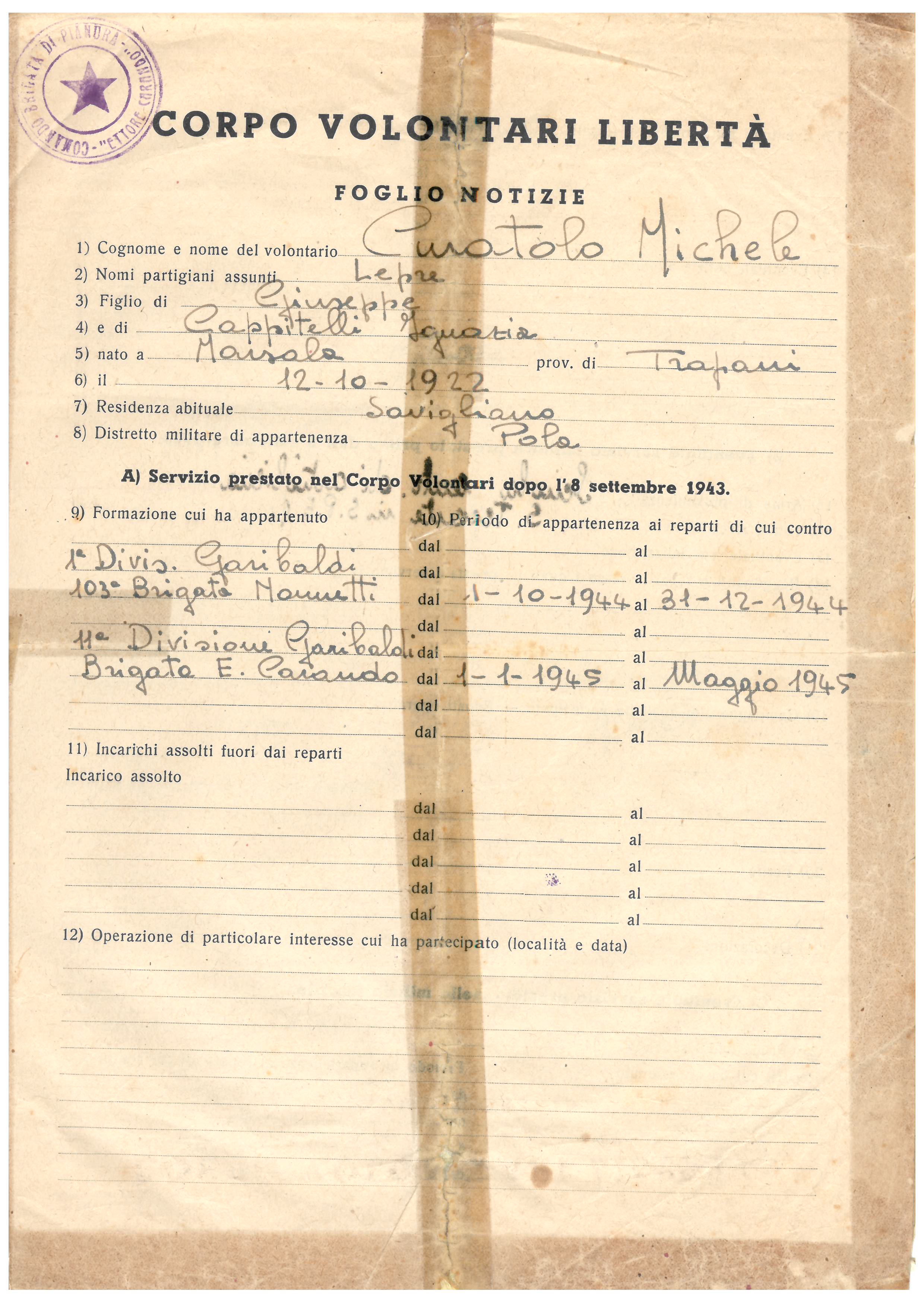 Di seguito la bellissima dedica che Giuseppe Curatolo ha voluto fare al presidente dell’Agone Nuovo e all’associazione tutta ricordando suo padre Michele: il partigiano Lepre.