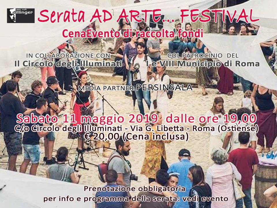 L’associazione culturale Dillinger è lieta di invitare tutte e tutti alla Serata Ad Arte – cena evento a base di ottimo cibi per ogni palato, spettacolo, cinema e musica, per sostenere la futura edizione di Ad Arte Festival, che da anni offre spazi e visibilità al cinema e alle arti indipendenti. Presso il Circolo Degli Illuminati, 11 maggio dalle h.19, una serata da non perdere, un’occasione di convivialità e progettazione culturale, fatta “ad arte”!!!