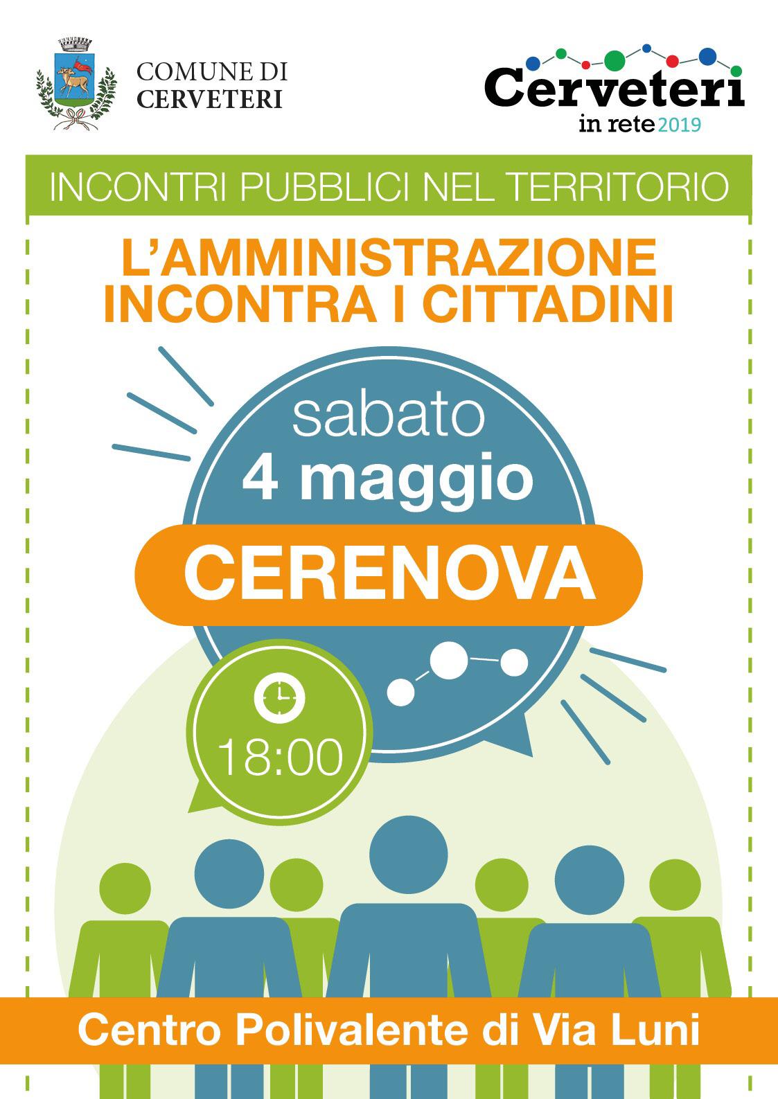 Un momento di partecipazione, di condivisione e di coinvolgimento di tutta la cittadinanza. La prima tappa di Cerveteri in Rete si terrà sabato 4 maggio prossimo alle ore 18:00 a Cerenova presso il Centro polivalente di via Luni. Nello specifico, tra gli argomenti in discussione ci sarà la gestione del servizio irriguo nella frazione di Cerenova e gli interventi programmati sul parco verde all’ingresso della frazione.