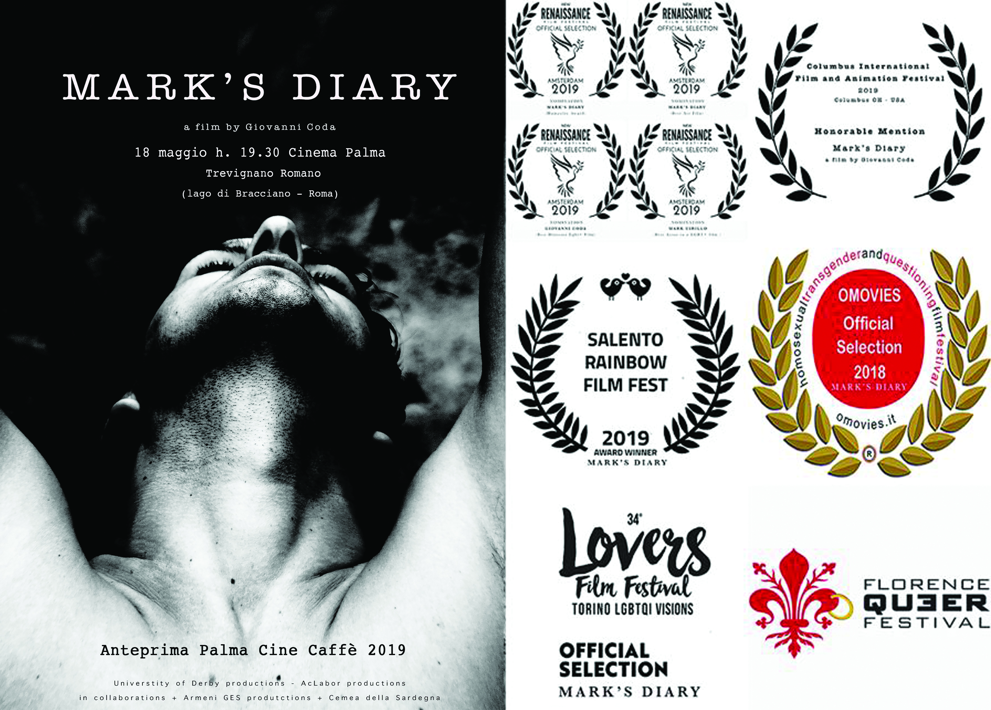 Mark’s Diary sarà proiettato come evento speciale presso il Cinema Palma di Trevignano Romano – storica culla del migliore e più originale cinema indie italiano e non solo – nell’ambito dello spazio dedicato alla rassegna FuoriNorma – ideata e curata da Adriano Aprà e del V-art Festival XXIII edizione a cura dello stesso Giovanni Coda.