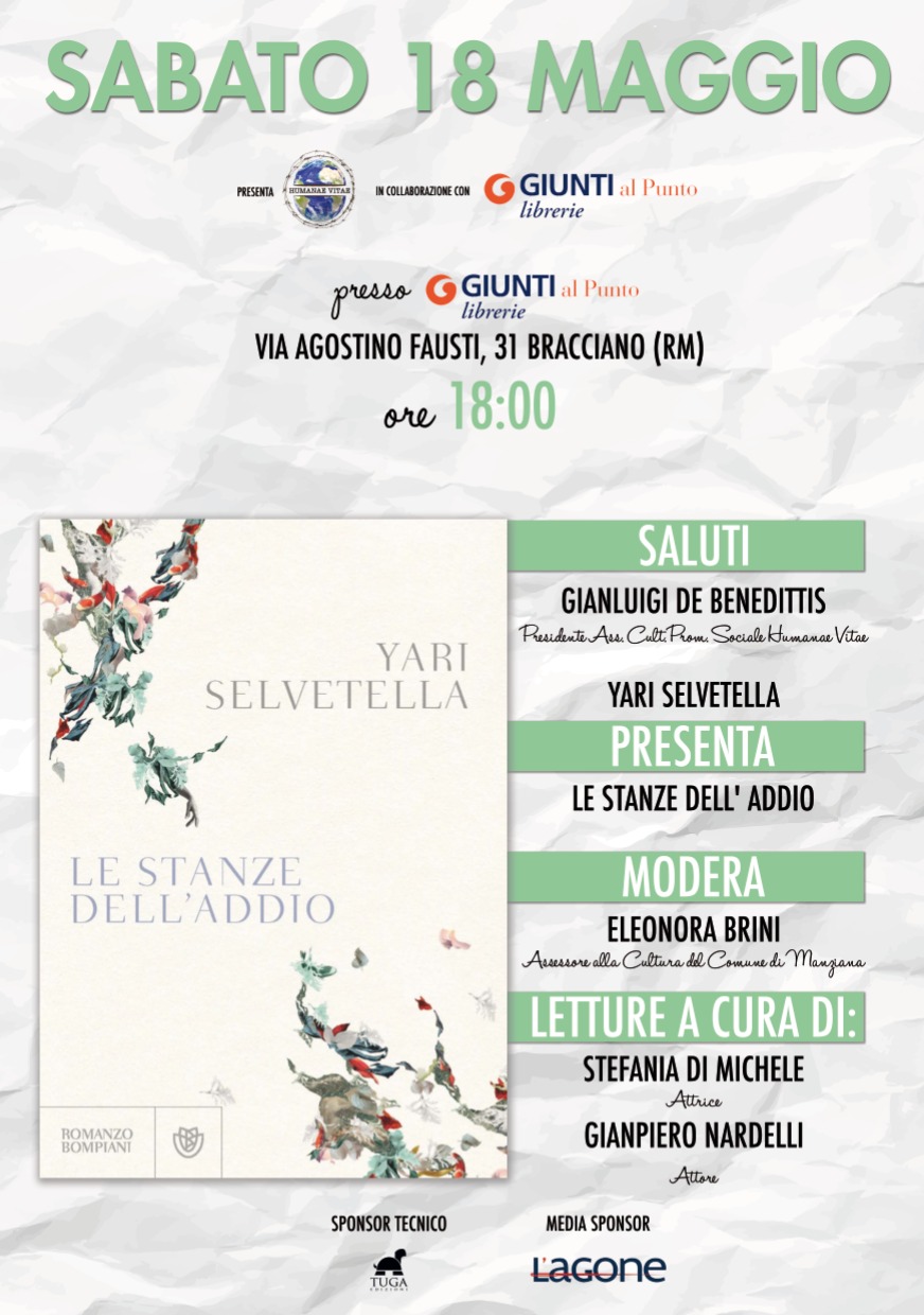 Bracciano: Presentazione libro “Le stanze dell’Addio”, Sabato 18 Maggio