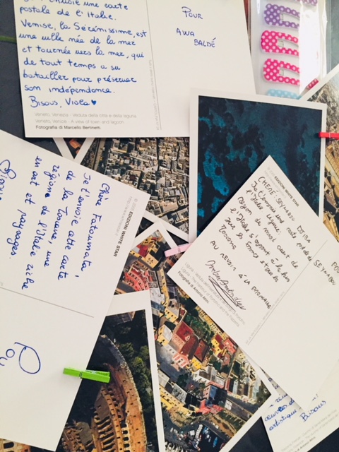 Quest’anno collaboriamo con ben 9 scuole di lingua francese, situate in diversi Paesi, dalla Francia al Belgio, da Haiti al Senegal. Dai bambini di quinta elementare ai ragazzi di terza media, tutti scrivono lettere in francese, nelle quali si descrivono, parlano della loro vita quotidiana, inviano regali, disegni colorati, cartoline dell’Italia, calamite, caramelle, e anche i meno convinti alla fine si sono fatti trascinare da questa novità.