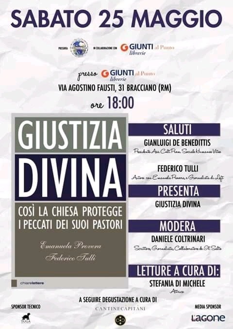 E non dimenticate l’appuntamento di sabato 25 maggio con Federico Tulli ed Emanuela Provera, autori del libro “Giustizia divina”.