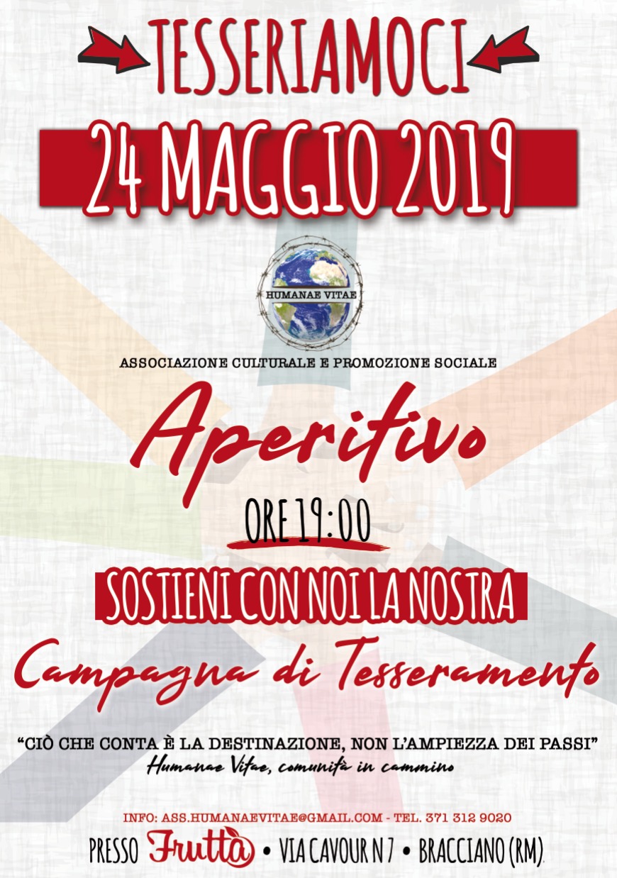 L’associazione Humanae Vitae vi aspetta venerdì 24 maggio presso l’Emporio Fruttà per offrirvi un buon aperitivo e la tessera di socio!