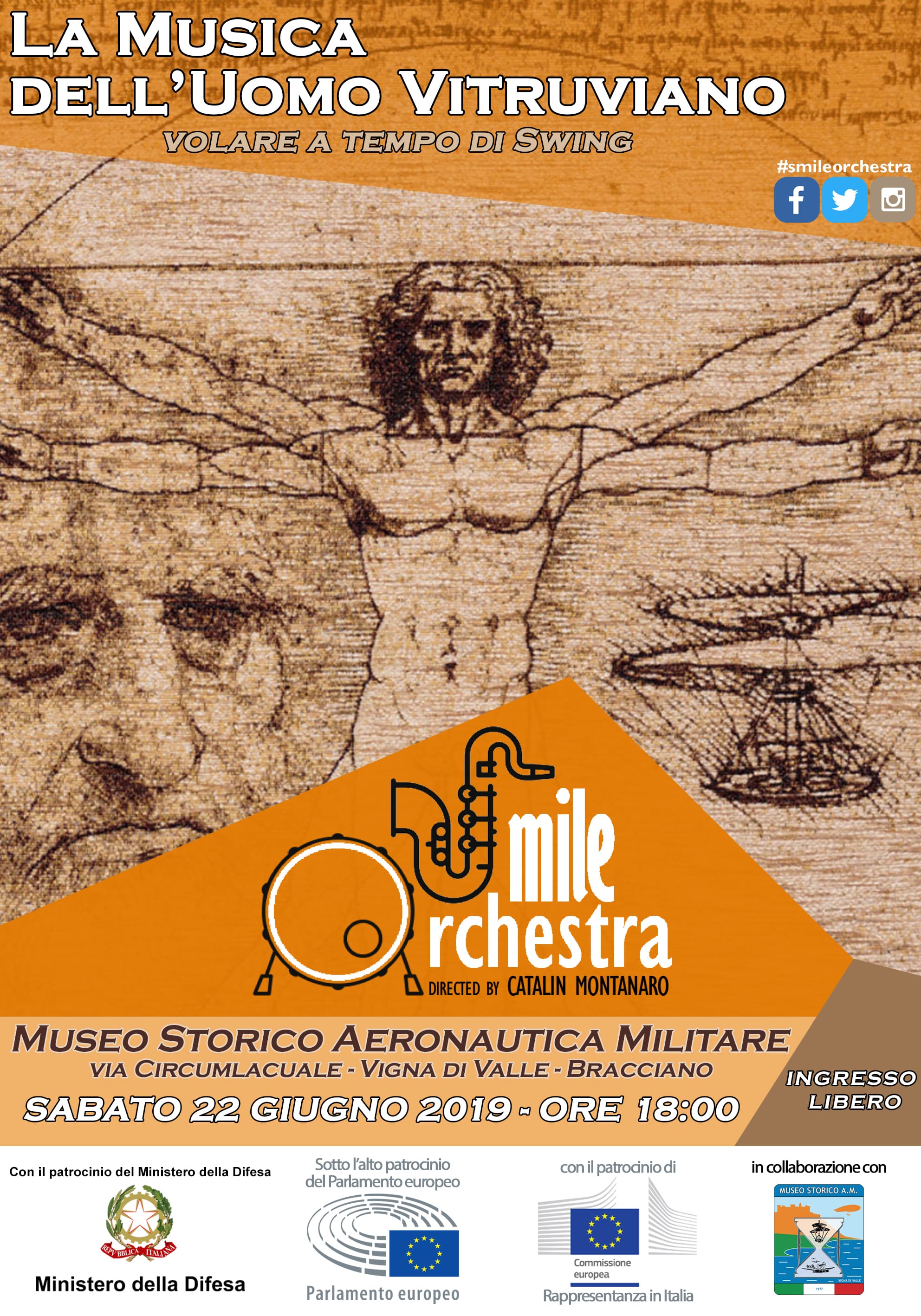 La Smile Orchestra diretta dal M° Catalin Montanaro renderà omaggio a Leonardo da Vinci, l’uomo che ha incarnato l’essenza stessa del Rinascimento e del genio europeo per il quale quest’anno ricorrono i 500 anni dalla morte, con un concerto all’insegna dello swing che ripercorrerà, insieme al pubblico, la storia dell’Aeronautica Militare Italiana ed Europea.