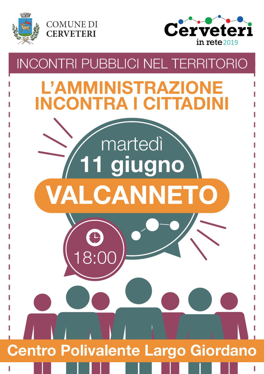 Dopo aver incontrato i cittadini di Cerenova e di Campo di Mare, il Sindaco Alessio Pascucci e la Giunta comunale, domani, martedì 11 giugno alle ore 18.00 saranno a Valcanneto presso il Centro Polivalente di Largo Giordano.