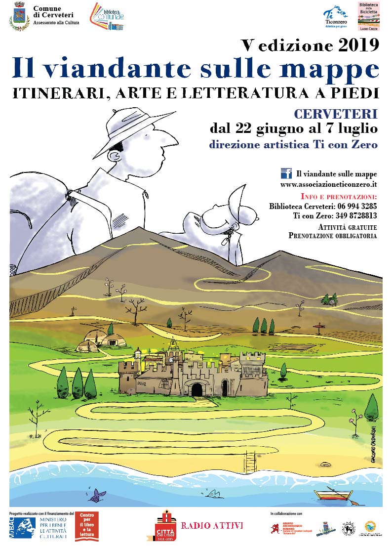 “Il Viandante sulle Mappe” è curato dall’Associazione Ti con Zero e promosso dal Comune di Cerveteri, Assessorato alla cultura – Città che legge 2018, MiBAC.