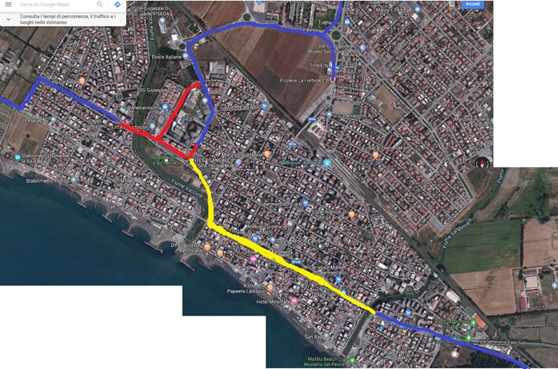 Ci siamo anche permessi di tracciare, in giallo, un possibile collegamento con la pista ciclabile di Palo che renderebbe davvero la nostra Città a misura di ciclista.