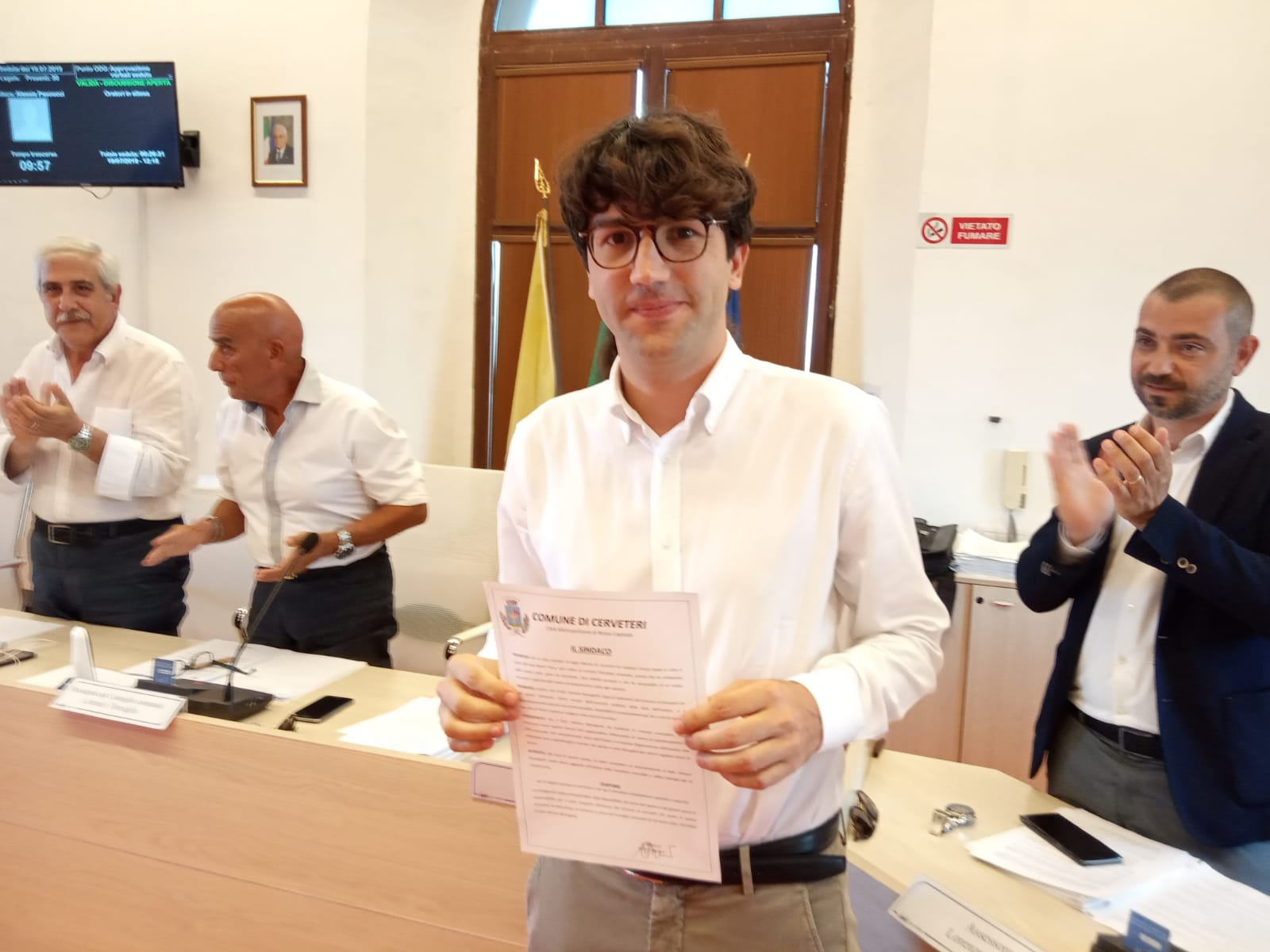 “Quella appena trascorsa è stata una settimana che ha segnato la storia di Cerveteri e di Campo di Mare. Due momenti da raccontare, che rimarranno indelebili in ognuno di noi. Prima la storica firma, davanti al notaio, dell’atto con il quale Cerveteri è diventata proprietaria del Lungomare dei Navigatori Etruschi, poi il Jova Beach Party, l’arrivo di oltre 40mila persone sulle nostre spiagge e la grande, straordinaria festa, che oramai tutti abbiamo potuto apprezzare dalle bellissime immagini che circolano in questi giorni su tutti i social network e la stampa locale e nazionale. Il lavoro è stato tanto, immenso. Giornate interminabili fatte di sopralluoghi, riunioni, che hanno richiesto un grandissimo sforzo da parte di moltissime persone che con professionalità, passione e amore per il territorio non si sono mai tirate indietro, ma anzi hanno rappresentato un valore aggiunto inestimabile per la Città di Cerveteri. Per questo, non posso fare altro, a nome della Città di Cerveteri, di fare loro i miei più vivi e sentiti ringraziamenti”. Così, il Sindaco di Cerveteri Alessio Pascucci, in apertura di Consiglio comunale tenutosi oggi presso l’Aula Consiliare del Granarone, ha voluto introdurre la consegna degli Encomi formali al personale dipendente del Comune di Cerveteri e a tutte le realtà che si sono distinte nelle fasi preparatorie e nel corso del Jova Beach Party dello scorso martedì 16 luglio.