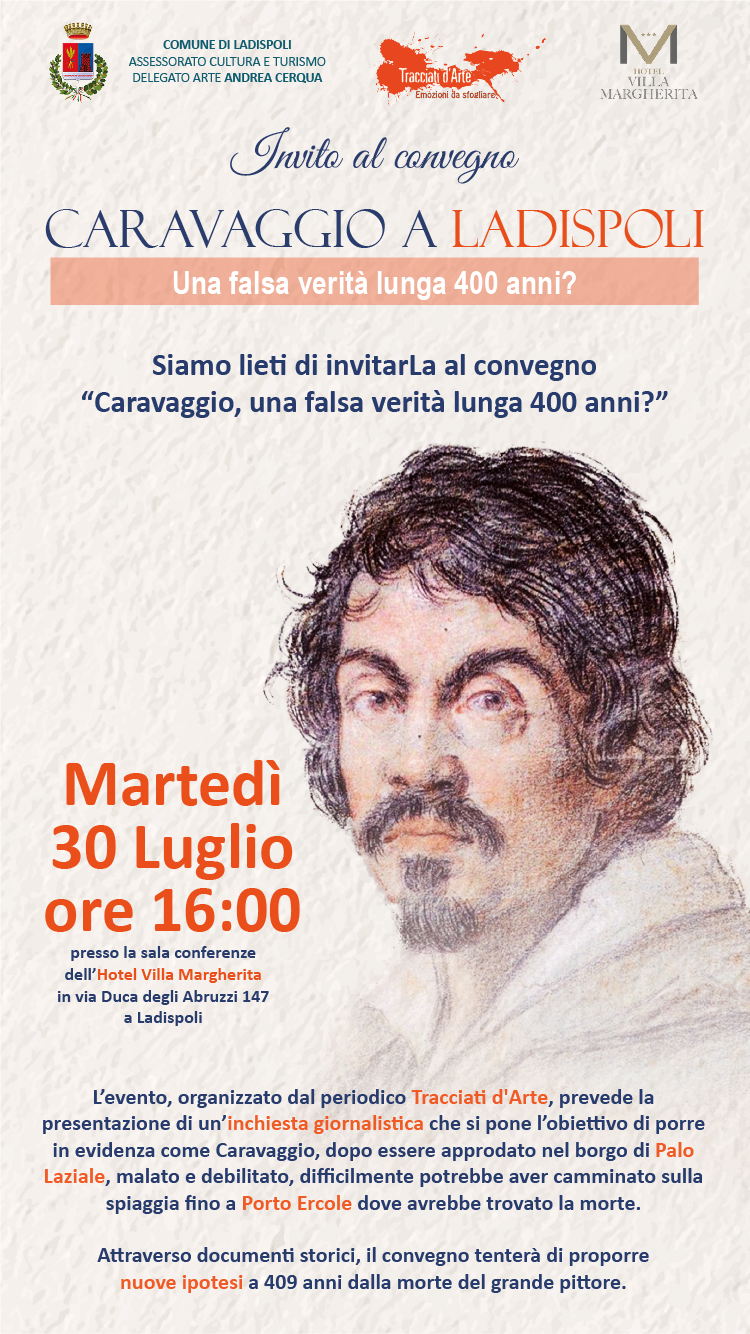 L’amministrazione comunale invita i cittadini a partecipare al convegno “Caravaggio, una falsa verità lunga 400 anni?” in programma oggi martedì 30 luglio, alle ore 16,00, presso la sala conferenze dell’Hotel Villa Margherita in via Duca degli Abruzzi 147 a Ladispoli.