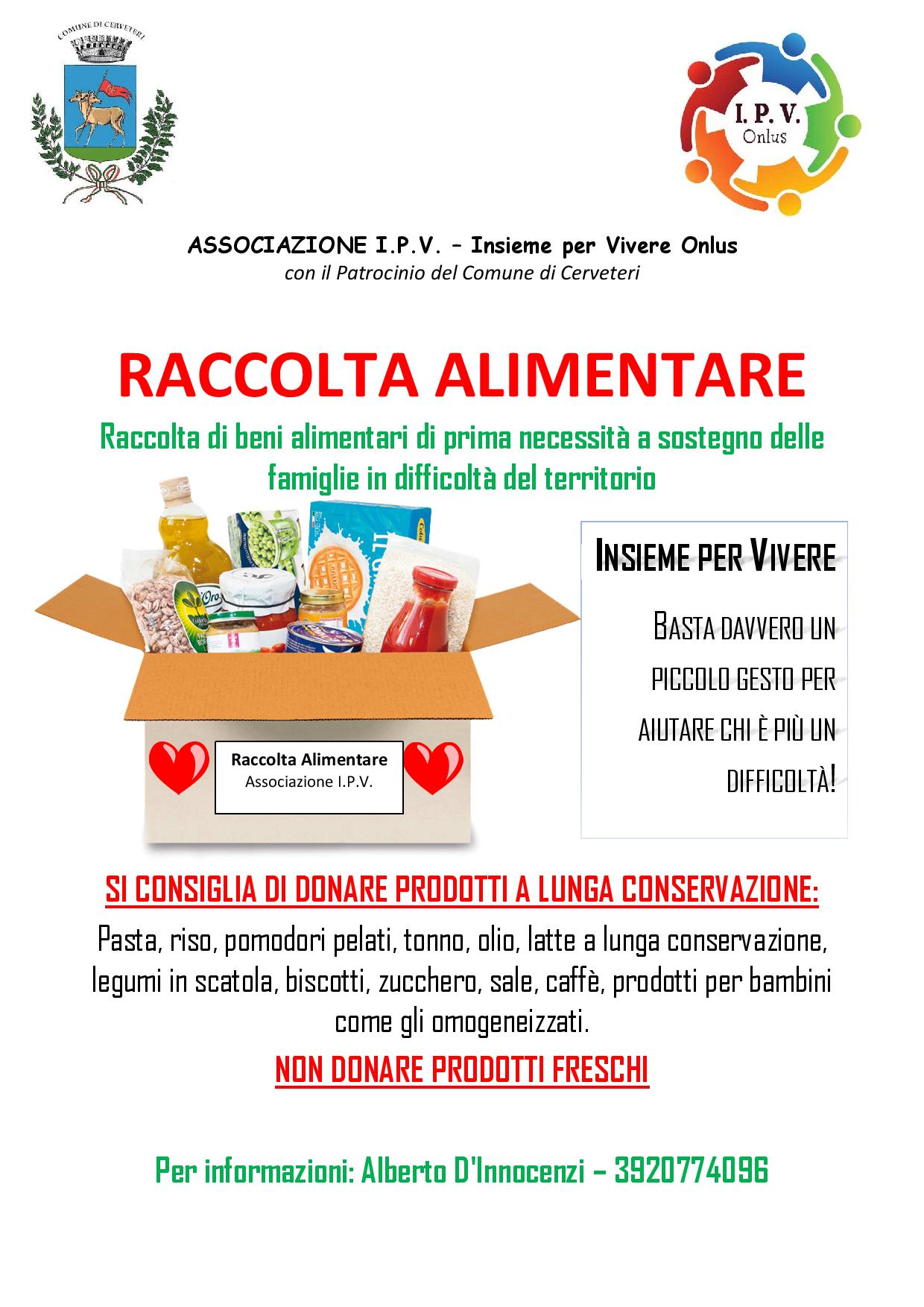 “Nella giornata della raccolta alimentare, sarà possibile donare prodotti a lunga conservazione, come pasta, riso, pomodori pelati, olio, biscotti, caffè, zucchero, tonno, prodotti in scatola vari, come legumi, oppure in generale tutto ciò che non è fresco o deperibile. Con l’occasione ci teniamo a ringraziare di vero cuore la Direzione del Supermercato Carrefour di Cerveteri, immediatamente resasi disponibile nell’accogliere la nostra richiesta e a far sì che potessimo realizzare questa giornata di solidarietà per tutta la collettività”. Ha concluso Alberto D’Innocenzi.