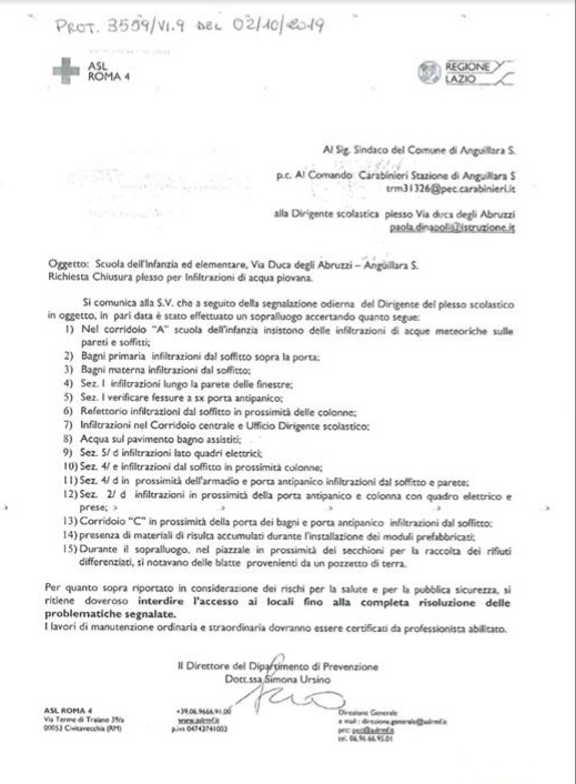 Come emerge nel verbale allegato, le motivazioni della chiusura sono poco rassicuranti, dalle cospicue infiltrazioni d’acqua alle blatte nelle aule.