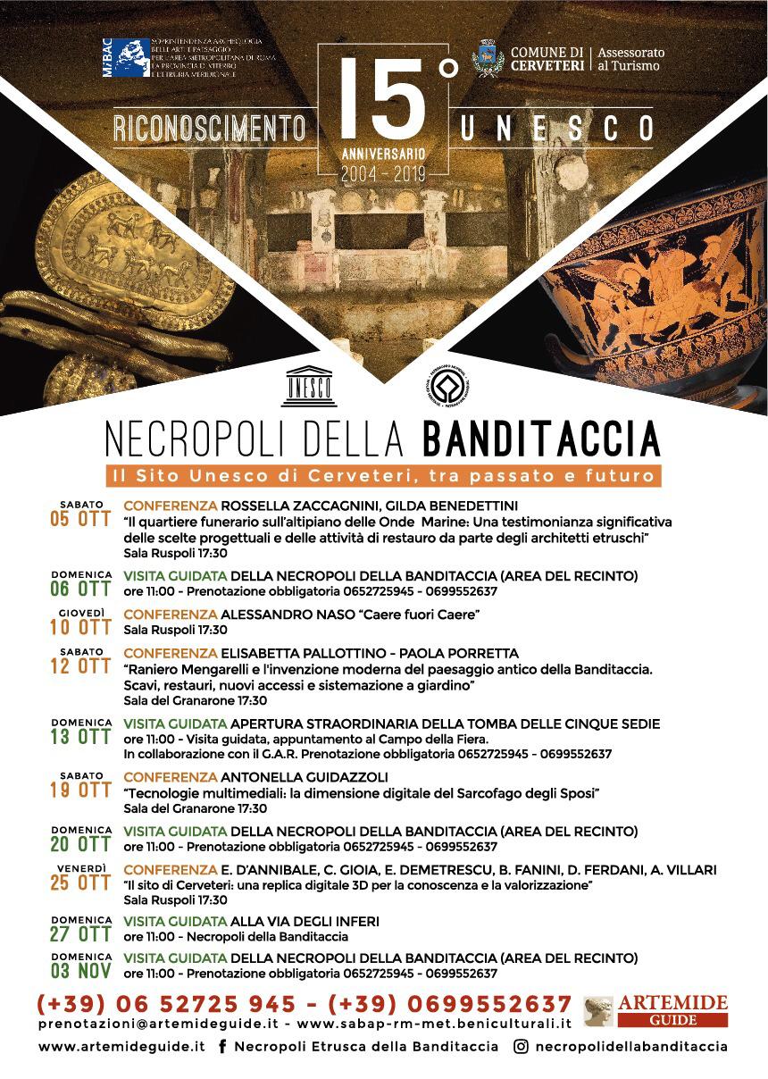 “Sarà un mese di ottobre ricco di appuntamenti culturali – ha dichiarato l’Assessore alla Promozione e Sviluppo Sostenibile del Territorio del Comune di Cerveteri Lorenzo Croci – relatori illustri si alterneranno nella nostra città in un ciclo di conferenze che in tutti questi primi appuntamenti hanno già riscosso un grande successo ed una ampia partecipazione di pubblico. In questo mese ricominciano anche le visite guidate alla Necropoli della Banditaccia. Un’altra occasione per conoscere e apprezzare ancora di più l’immenso patrimonio della nostra città”.